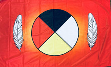 SKU: 689930>$15.9936" X 60" , MEDICINE WHEEL WITH 2 FEATHERS, HIGH QUALITY FLAG WITH BRASS EYELETS, GREAT FOR OUTDOOR USE -