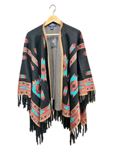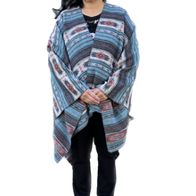 SKU: 18101>$42.9918101 Design by Ojibwa Artist Norval Morrisseau. The Kimono Scarf is a lightweight, flowing garment that can be worn kimono-style, off-shoulder, or as a simple neck scarf. When worn in kimono style, buttons can be fastened to create armholes and closure... -